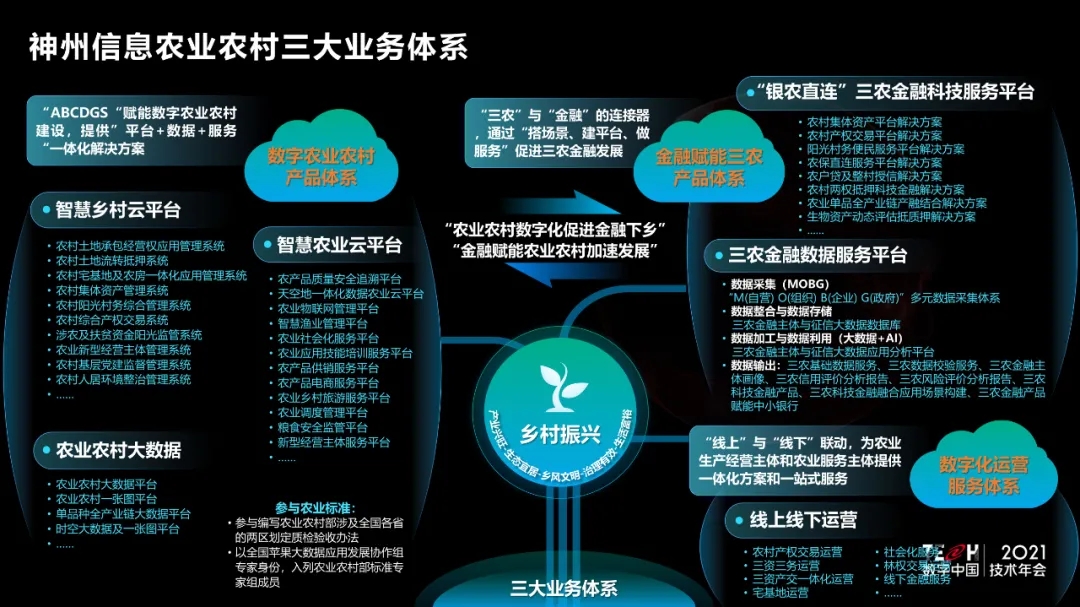 9月29日,TECH数字中国 2021技术年会——“场景创新·赋能高质量发展”主题论坛在西城区新动力BB贝博艾弗森官网金融科技创新中心举办。BB贝博艾弗森官网农业BG副总裁刘烨做题为《金融科技赋能乡村振兴一张图》主题演讲,并发布“BB贝博艾弗森官网金融科技赋能乡村振兴一张图”,通过“农业农村业务数字化+农业农村资产金融化+农业农村运营持久化”,提供完善的整体解决方案,从夯实农业农村大数据底座、金融赋能三农高质量发展到未来持续运营服务,助力国家乡村振兴战略全面有效落地,为农业农村现代化发展的总体思路、发展目标、重点任务提供指引。