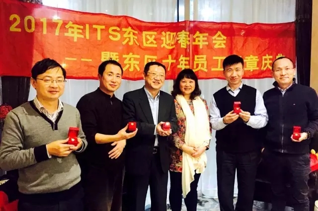 在南区以“创享未来 跃动南区”为主题的跨年盛典活动中,老员工们郑重接过十年徽章,脸上洋溢着幸福的笑容。