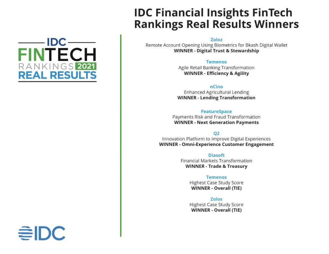 FinTech活动 | IDC 全球Fintech Rankings及“Real Results”真实价值奖揭晓
